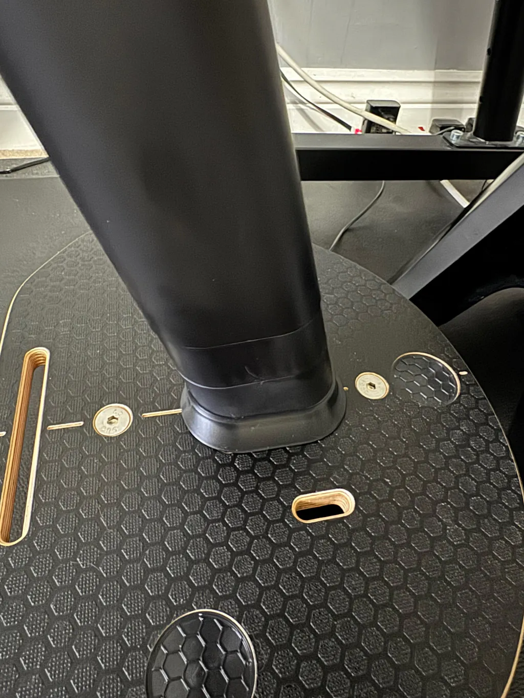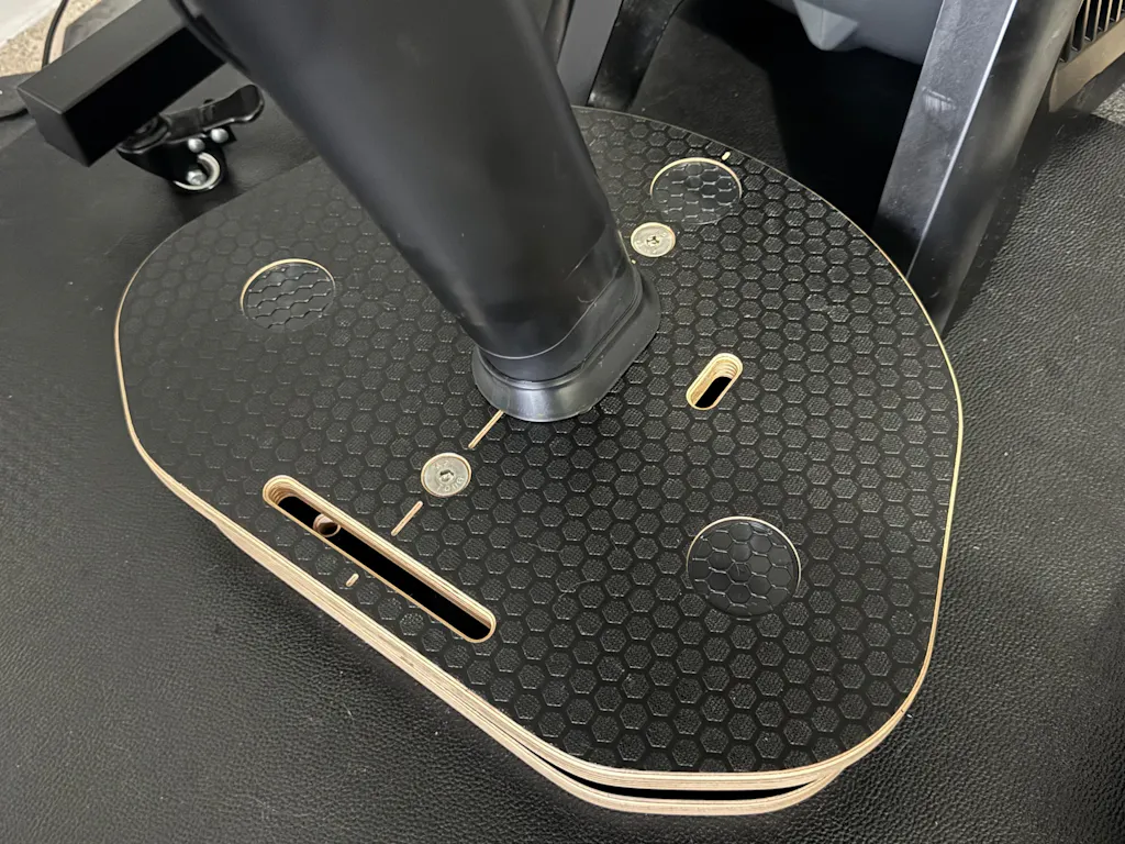 Secure mounting: It locks the Zwift Ride's front leg firmly in place, preventing it from slipping or lifting during use. Without proper securing, the front of the bike tends to walk across the rocker plate - you might have noticed the bike doing this when using it on a normal floor.