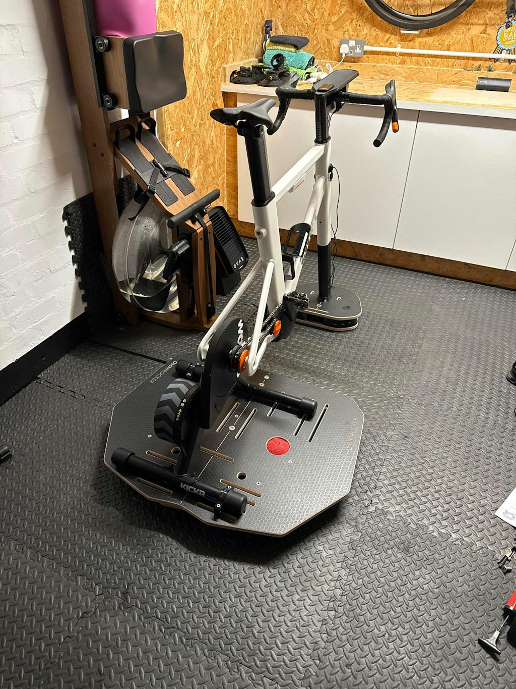 Secure mounting: It locks the Zwift Ride's front leg firmly in place, preventing it from slipping or lifting during use. Without proper securing, the front of the bike tends to walk across the rocker plate - you might have noticed the bike doing this when using it on a normal floor.